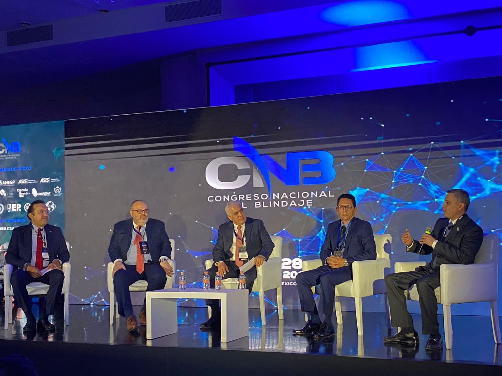 Durante el primer panel, se habló del rol y futuro del blindaje en la seguridad del país y en él, participaron: Ignacio Baca, presidente, Consejo Nacional de la Industria de la Balística (CNB); Armando Zúñiga, presidente, Agrupaciones de Seguridad Unidas por México (ASUME); René Rivera, coordinador de la Comunidad de Blindaje de ASIS Capítulo México 217, Leopoldo Cerdeira, presidente, Asociación Intercontinental de Blindadores (AIB) y Esteban Hernández, presidente, Asociación
