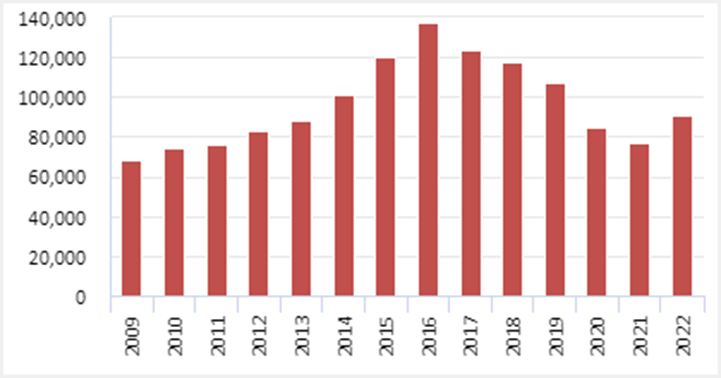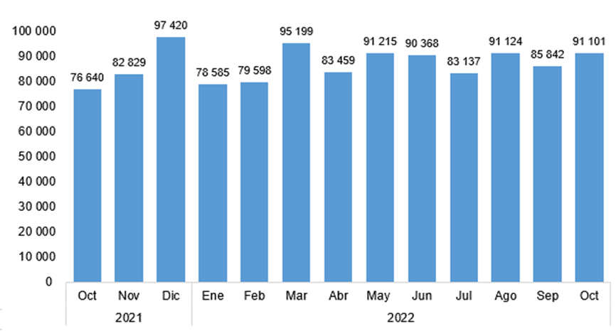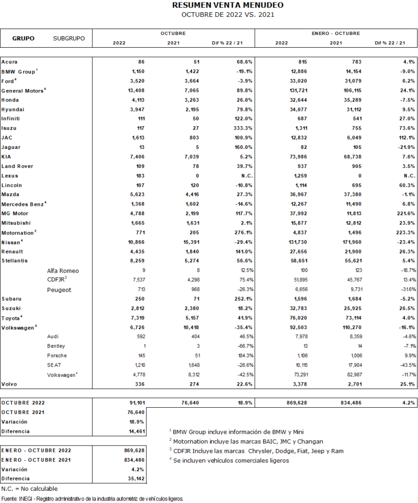 En octubre del presente año, se vendieron en México 91,101 unidades, es decir, un 18.9% mayor al número de unidades comercializadas en octubre de 2021.