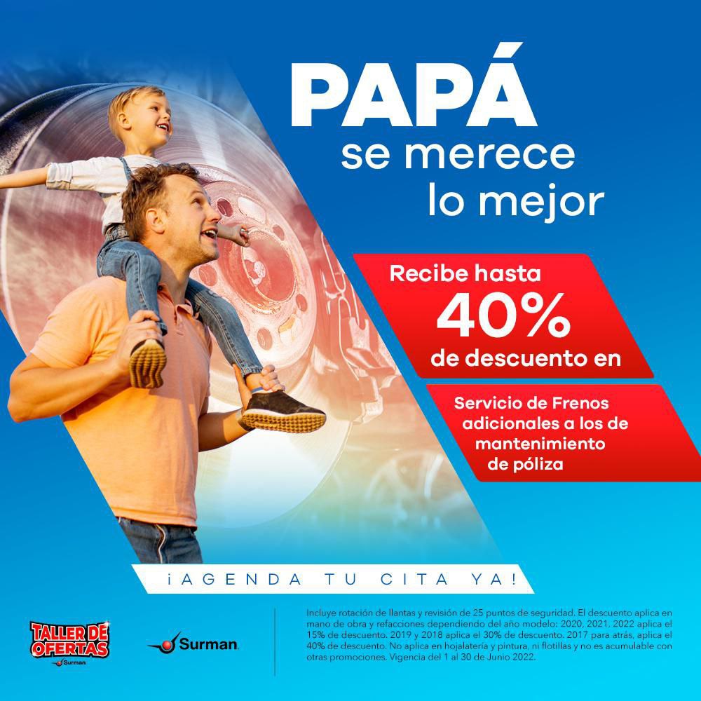 Así que, agenda tu cita y asiste a una de las sucursales que tiene Surman y consiente a papá en su día, pues estas promociones estarán vigentes hasta el 30 de junio.