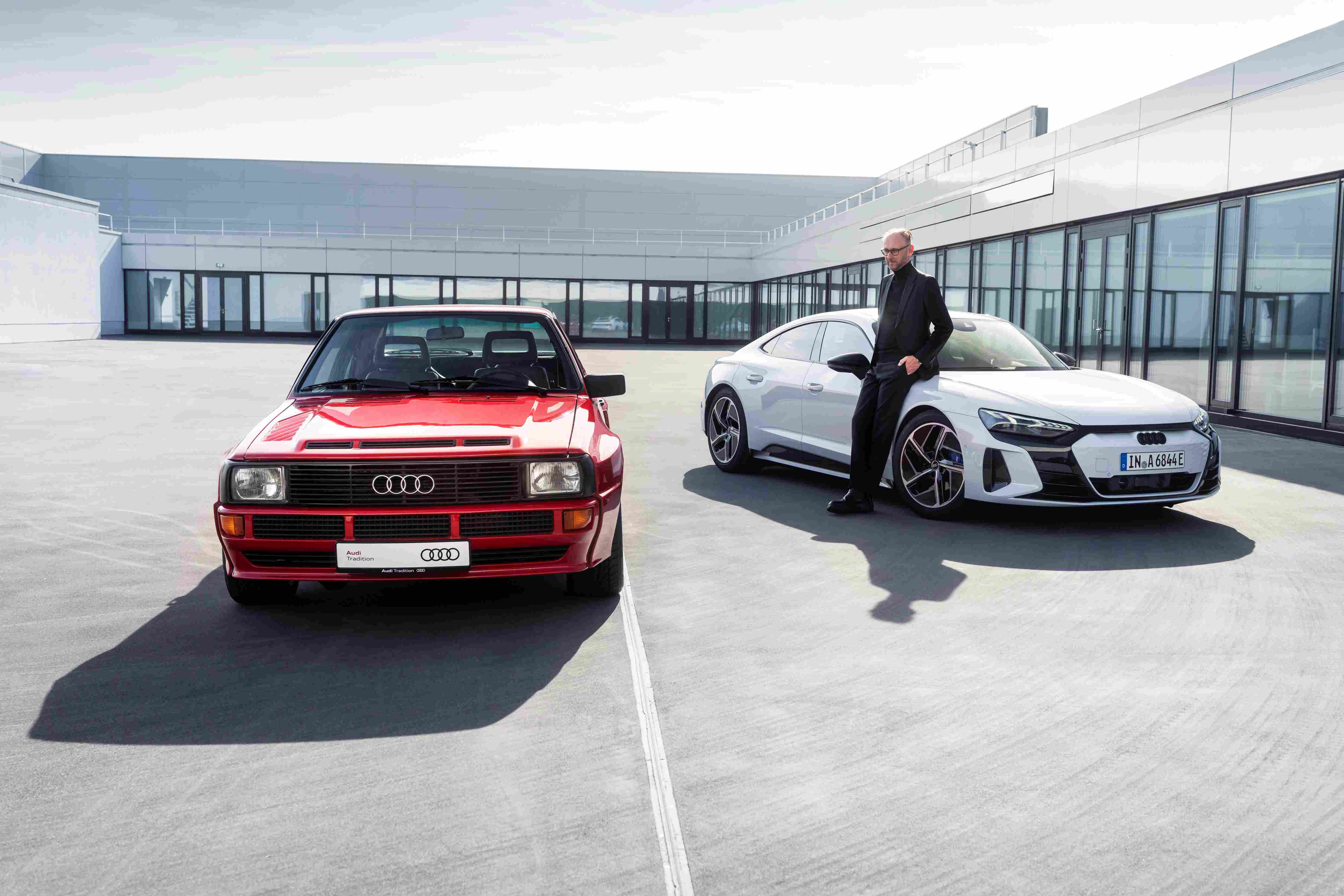 ¡Exacto! Hoy, delante de mí, en mi mesa, el Sport quattro y el RS e-tron GT están uno al lado del otro. El RS e-tron GT tiene muchos elementos que mi equipo y yo adaptamos del Sport quattro durante el proceso de diseño. Este Gran Turismo eléctrico tiene fuertes vínculos con la historia de Audi, y para mí, en su iconografía, es el Audi Sport quattro tal y como lo vi por primera vez hace cuarenta años trasladado a una nueva era eléctrica. En consecuencia, la tradición proporciona un importante impulso para el futuro.