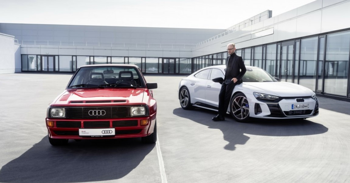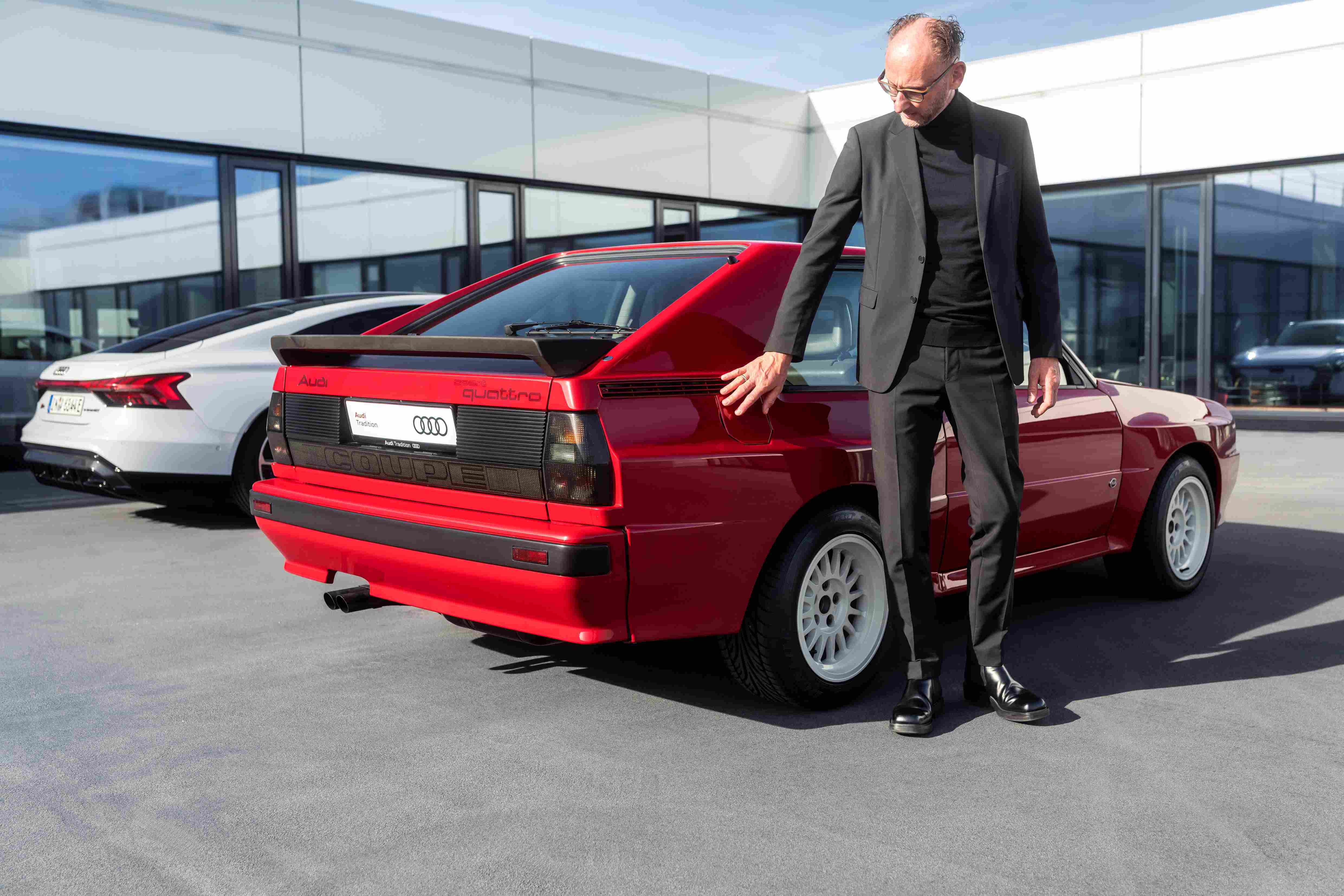Sí, así es. En 1983 el Audi Sport quattro destacó en el Salón Internacional del Automóvil de Frankfurt como ningún otro auto. En general era totalmente diferente a todo lo que había visto hasta entonces, tenía un increíble carácter, con su ancha carrocería y sus formas prominentes. ¡Semejante consistencia era impresionante! La idea de expresar la deportividad automovilística de esa manera, de utilizar el estilo para hacer que la tecnología fuera tan espectacularmente visible para todo el mundo y, en consecuencia, inmediatamente accesible para todos… Esa idea me inspiró tanto que, mientras aún estaba en el stand del salón del automóvil, decidí que quería ser diseñador en Audi. De eso hace exactamente cuarenta años. Para mí ha sido un doble éxito que los elementos de estilo de aquel icono, como el expresivo pilar C, las distintivas tomas de aire o simplemente toda la progresividad que representaba me hayan acompañado en mi trabajo hasta el día de hoy.