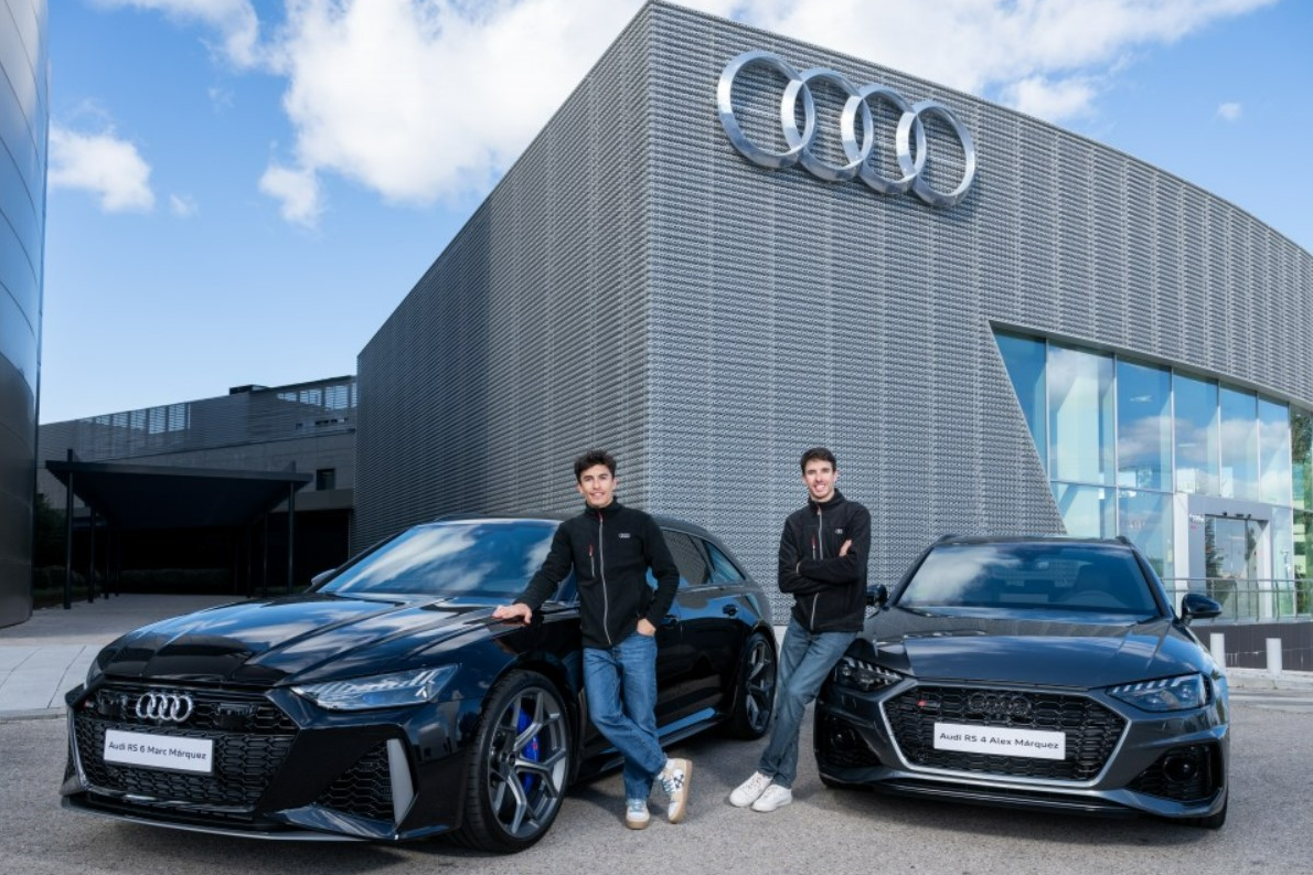 Los campeones del mundo de motociclismo Marc Márquez y Álex Márquez, integrantes esta nueva temporada de MotoGP del equipo Gresini Racing de Ducati, compartirán a partir de ahora un vehículo fuera de los circuitos conduciendo en sus desplazamientos diarios modelos RS de altas prestaciones de Audi Sport.
