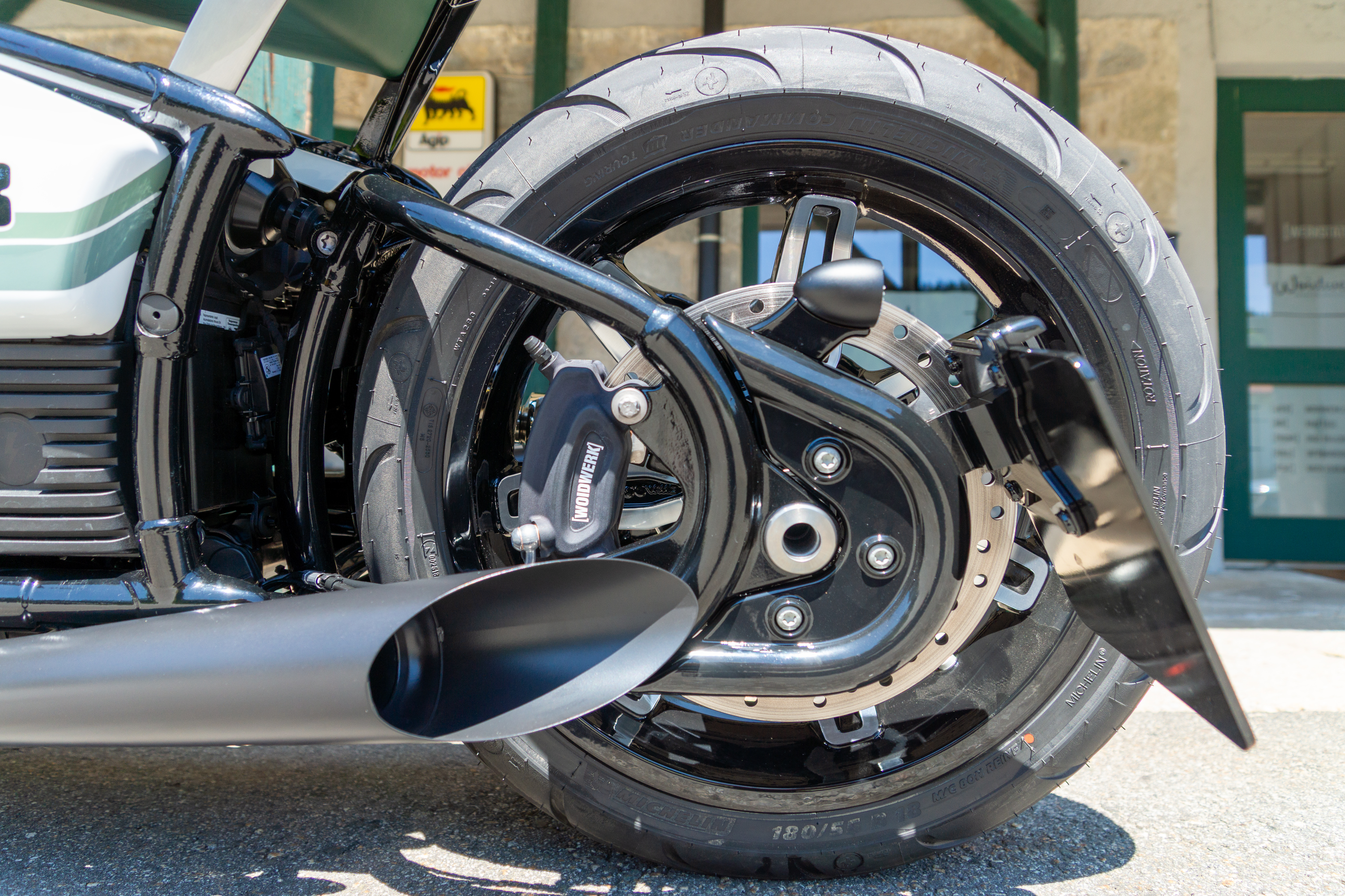 Muchos componentes, desde soportes de carenado hasta la construcción de la luz trasera y el distintivo cierre de la oscilación con porta placas integrado, fueron diseñados específicamente, fabricados mediante CNC o realizados en impresión 3D. Los soportes de las intermitentes y la luz trasera en la oscilación también son de desarrollo propio y subrayan el amor por los detalles de [WOIDWERK].