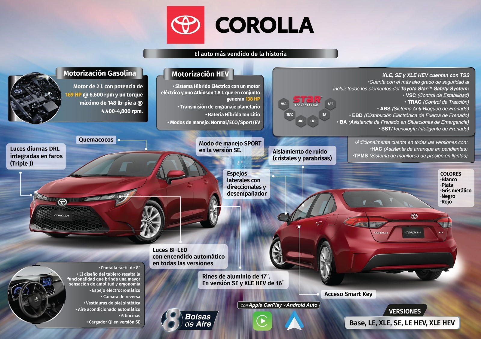 Está disponible en las 99 distribuidoras del país desde $419,900 MXN. Conoce más de Corolla en la siguiente infografía. D