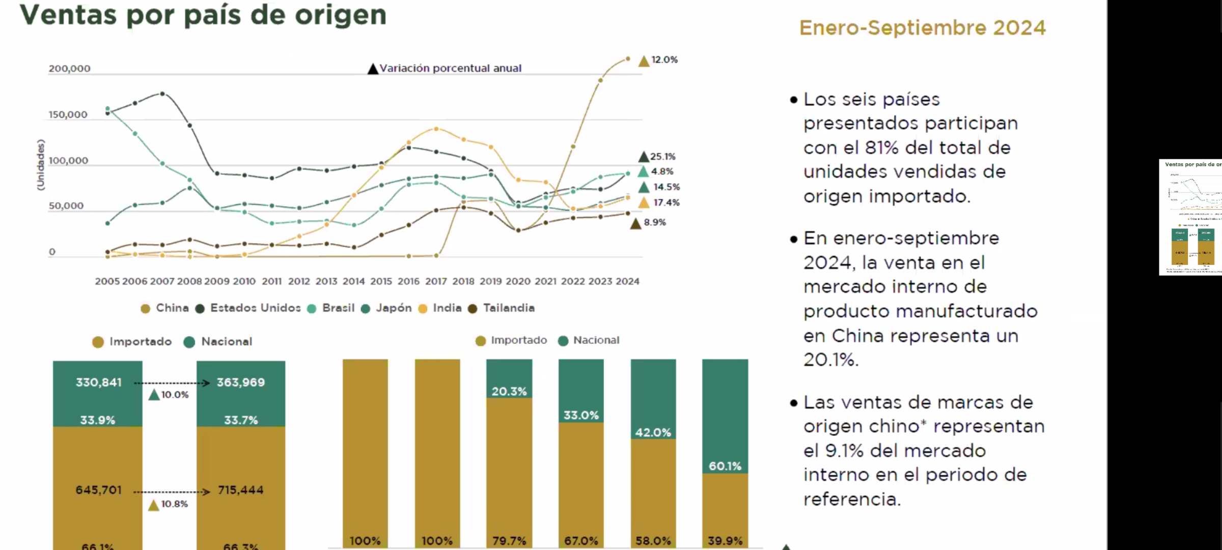 En estas ventas, las ventas de los vehículos de origen chino fue de 9.1% en el acumulado enero-septiembre, aunque si se considera el total de vehículos importados de China por parte de las marcas tradicionales, fue del 20.1%