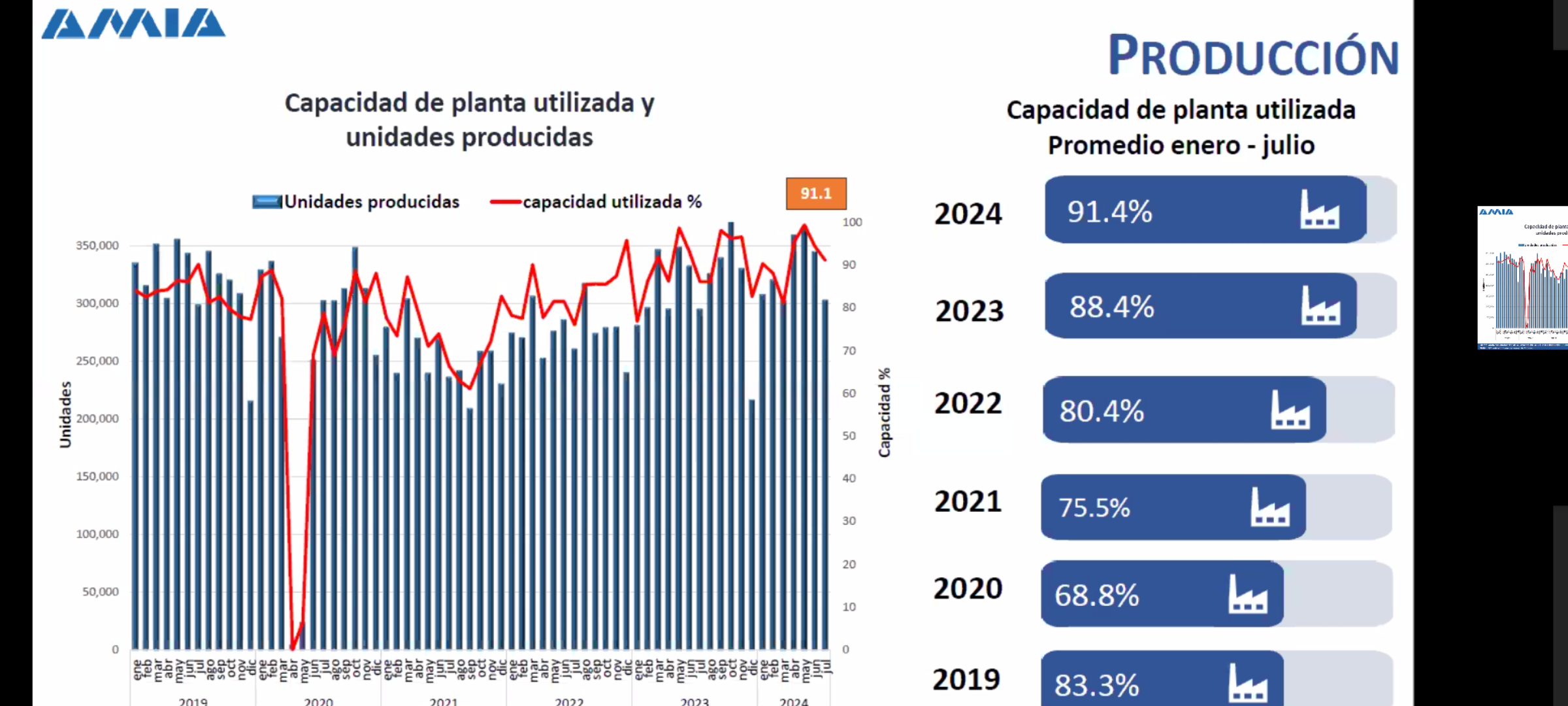 Y la capacidad de producción utilizada de las plantas en México fue del 91.4% en el periodo enero-julio de este año.