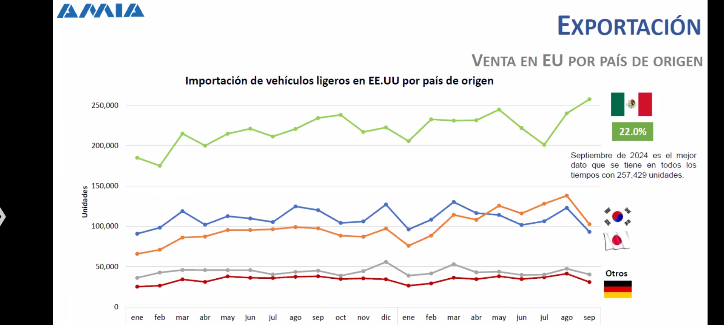 Este volumen de exportaciones, significó para México que el 22% de las importaciones de vehículos en septiembre en el gran mercado de Estados Unidos, fueran hechos en México, dijo el ejecutivo.