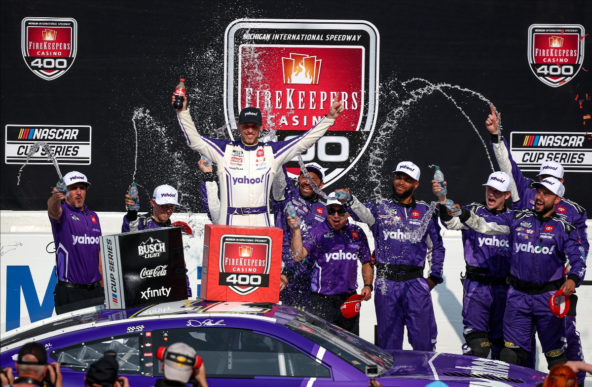 Denny Hamlin gana en Michigan con estrategia magistral; Suárez termina en la posición 14