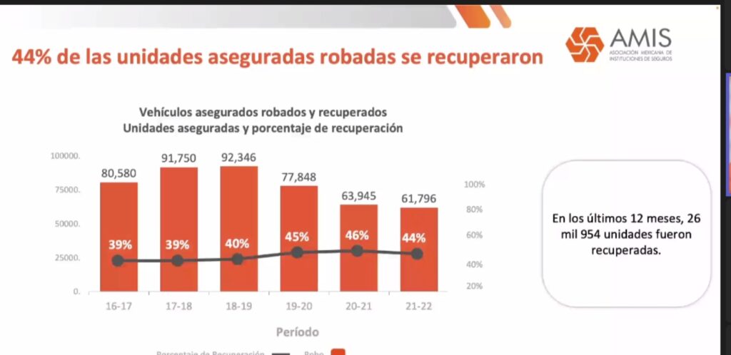 Hay que precisar que estos datos de robos son exclusivamente de vehículos asegurados, ya que solo 1 de cada 3 autos que circulan en este país, están asegurados, de un parque vehicular de 50.3 millones de unidades en circulación.