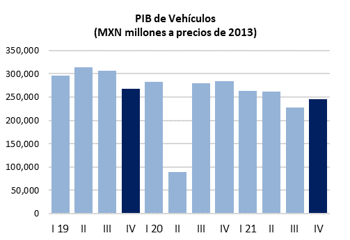 Se trata de un máximo en su valor de mercado, su PIB se ubicó en más de 23,000 millones de dólares en 2021, representando 10.0% del PIB manufacturero. Sector que gana presencia con el paso del tiempo, ya que hace más de una década representaba menos de 7.0%, y es una de las industrias del país que ha mostrado un buen desempeño desde la vigencia del TLCAN.