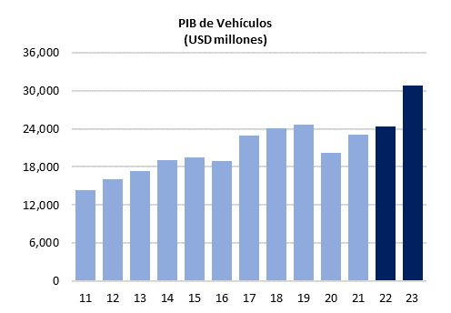 El valor de producción de vehículos en 2021 habría sido de $94,000 millones de dólares; esta es una forma de medir el tamaño del mercado de esta industria.