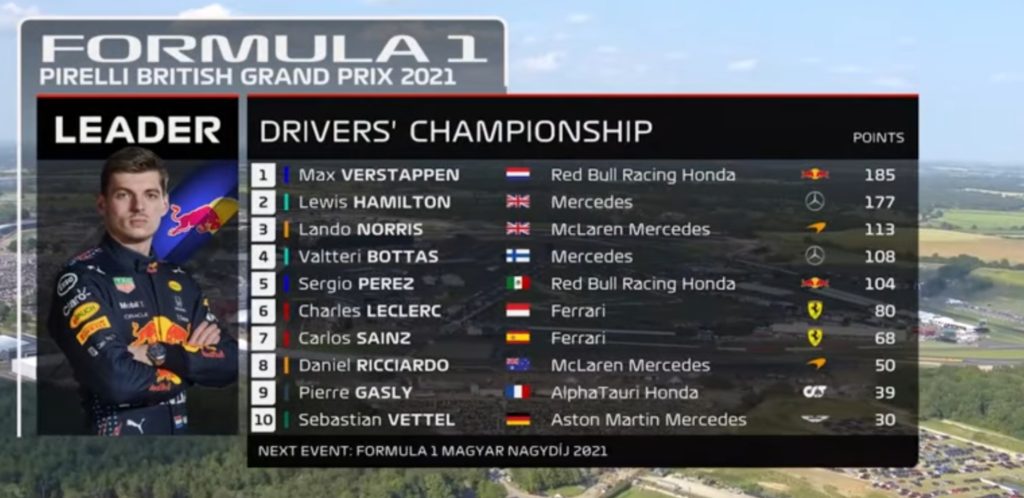 El que Hamilton jugara de local, le provocó una dosis de presión y de motivación, por lo que la disputa de ganarle a Verstappen el liderazgo desde al arranque, provocó un ligero alcance; suficiente para sacar de la carrera al piloto de Red Bull.
