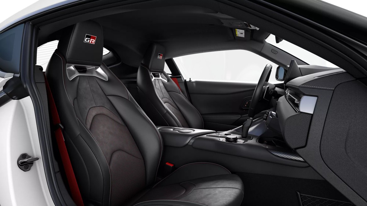Al interior, refuerza la conexión entre piloto y máquina con acabados exclusivos que incluyen cinturones de seguridad en color rojo, palanca de velocidades forrada en piel con costuras rojas, reposacabezas bordados con el emblema GR y detalles funcionales como cubiertas en portavasos que aportan un estilo limpio y minimalista. Los asientos deportivos con 12 ajustes eléctricos, el parabrisas acústico y el volante forrado en piel garantizan una experiencia tan confortable como dinámica.