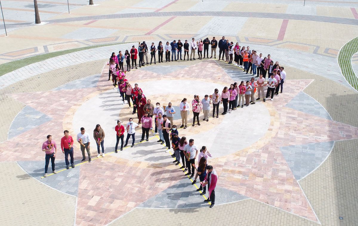 Algunos integrantes de Kia México se han sumado a la causa al donar su cabello para hacer pelucas y realizaron la toma de la tradicional foto del listón rosa en la plaza del Sol, en Nuevo León, símbolo mundial de concienciación del cáncer de mama.