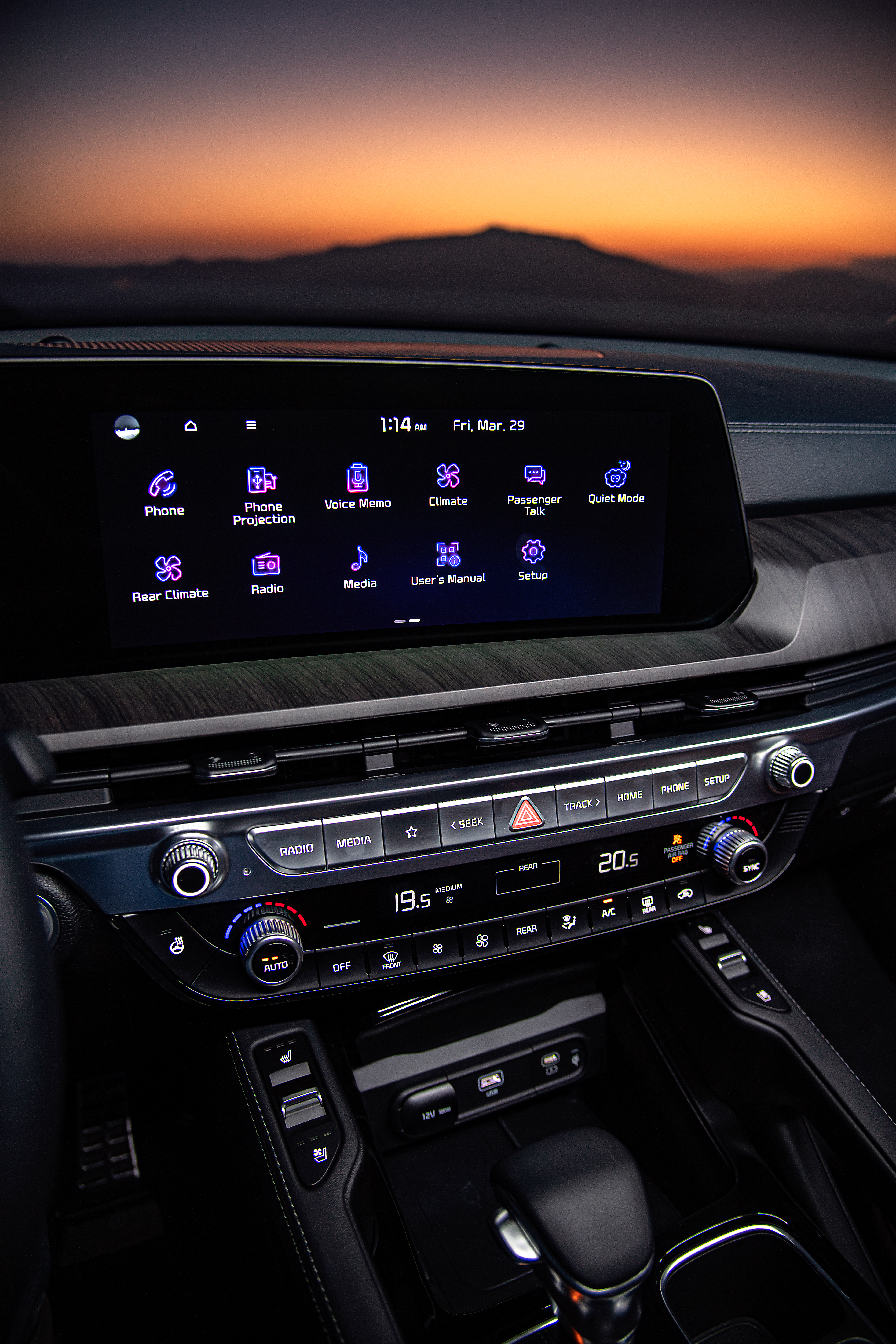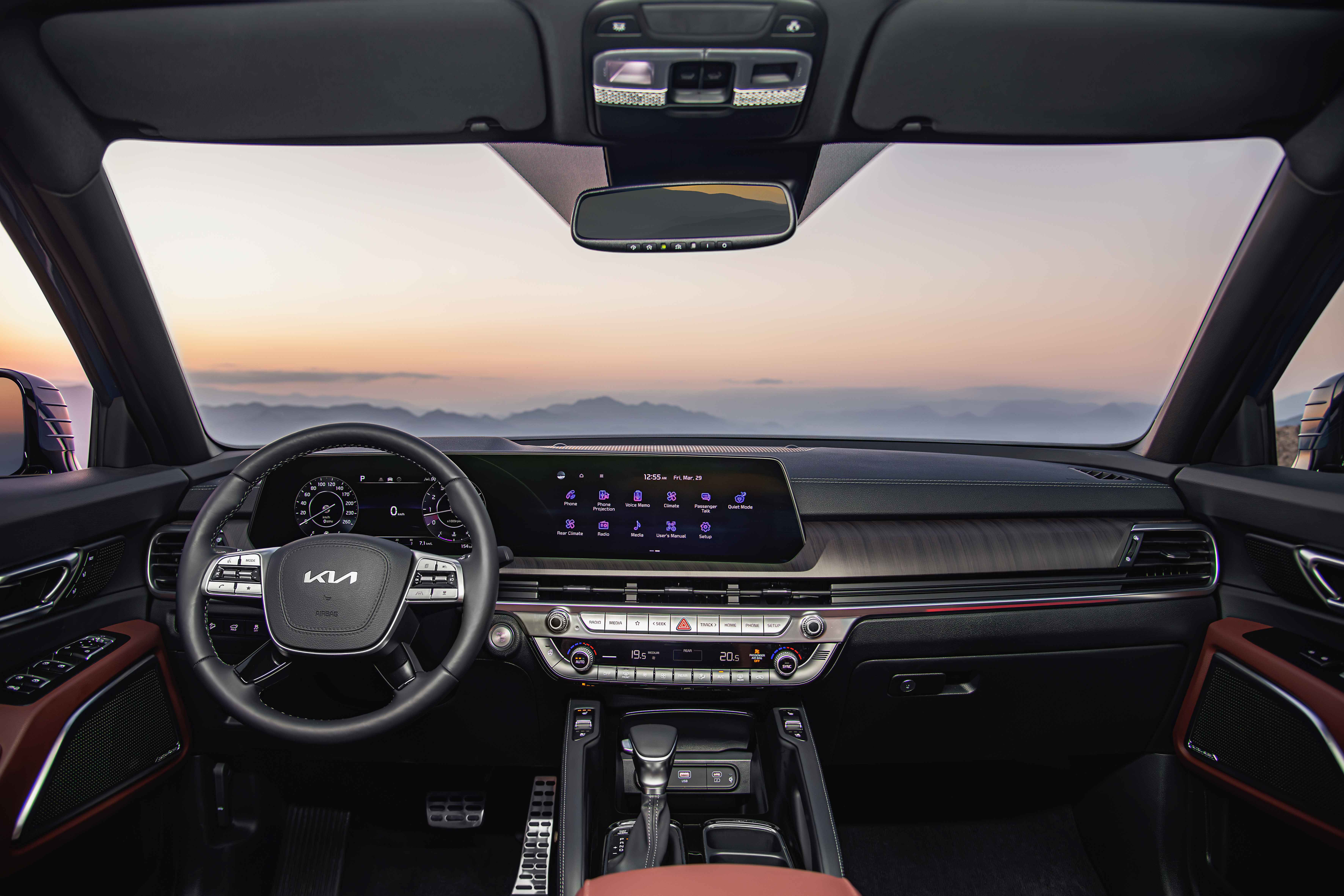 Los materiales utilizados en el interior de la Kia Telluride son de la más alta calidad y fueron cuidadosamente seleccionados, lo anterior se aprecia tanto a la vista como al tacto. Los paneles interiores están adornados con insertos en madera genuina y detalles en aluminio cepillado, creando un espacio elegante y cálido. La disposición de controles fue diseñada de manera intuitiva, facilitando su uso y aumentando la seguridad al conducir.