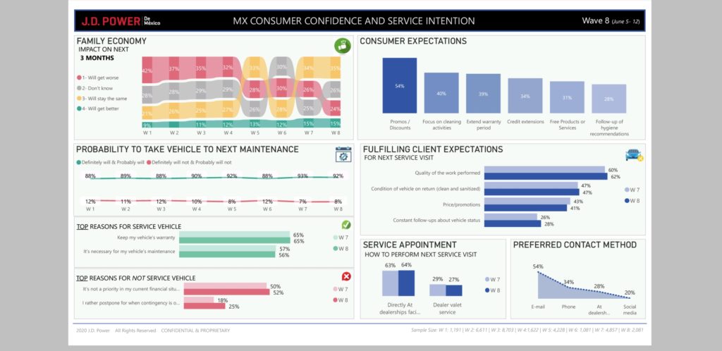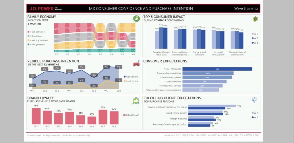 “La intención de compra, así como la intención de servicio del consumidor mexicano durante el COVID-19 y la etapa de reactivación, continuarán siendo medidas y analizadas semana a semana por J.D. Power para identificar las expectativas del consumidor en México” finaliza Gómez.