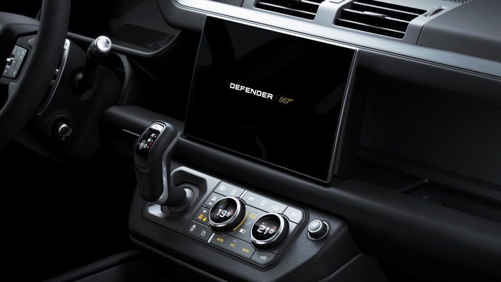 Los toques a medida se extienden al práctico interior, con umbrales en puerta iluminados “Defender 007” y una animación de inicio de la pantalla táctil especialmente desarrollada para el intuitivo sistema de infoentretenimiento Pivi Pro que hace honor a la larga asociación de Land Rover con la franquicia de James Bond. Por la noche, los clientes también podrán ver los gráficos exclusivos de las luz de bienvenida con el logo “007”