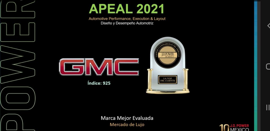 Y fue la marca de volumen Jeep que obtuvo el primer lugar con 905 puntos , y en la marca de lujo la ganadora fuer GMC 925 puntos.