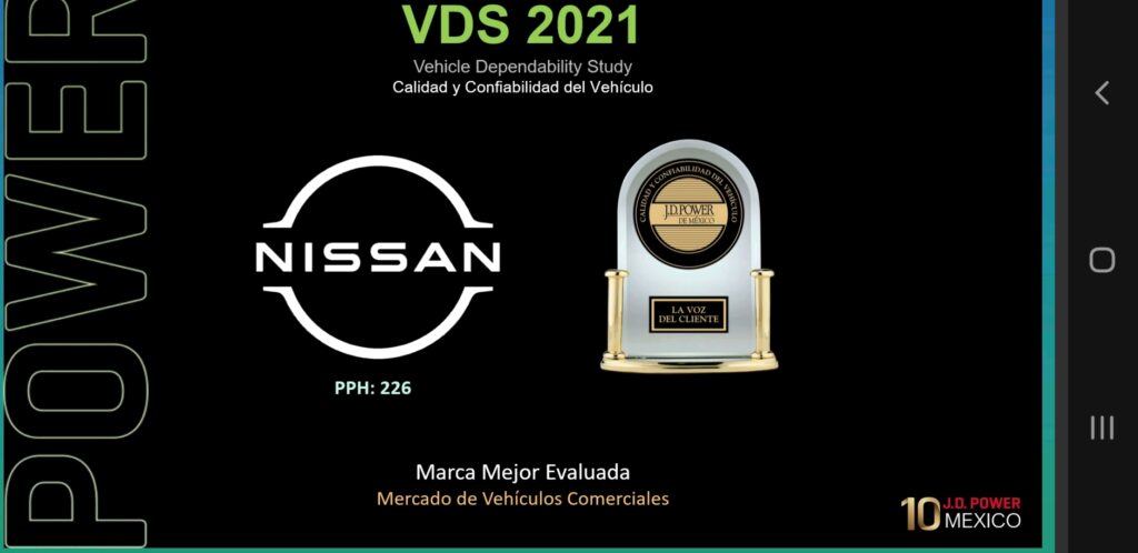 Vehículos comerciales ligeros se reconoce a marca mejor evaluada fue Nissan; y en marcas de volumen fue Hyundai; en el segmento de los subcompactos el primer lugar fue para el Hyundai i10; en subcompactos superior fue el Suzuki Swift.