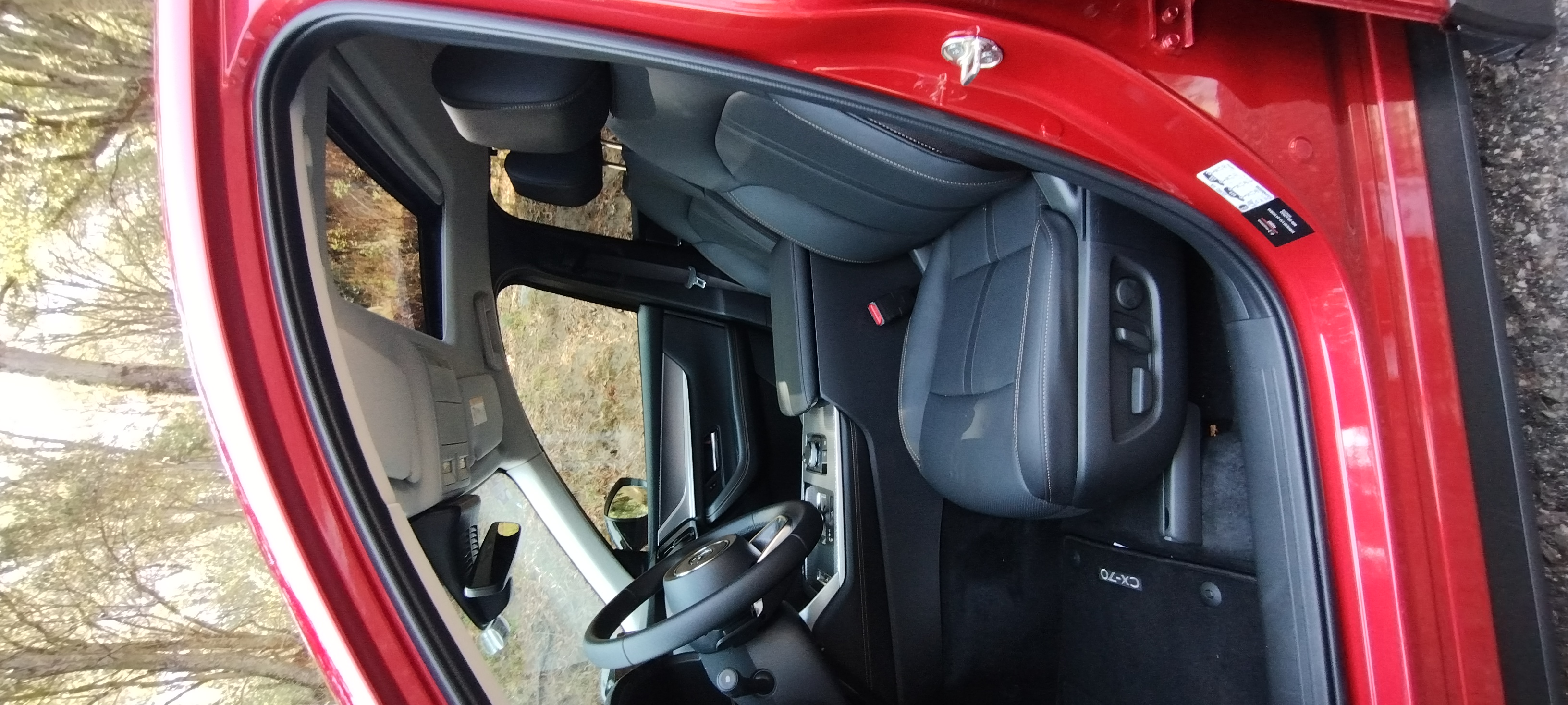 La Mazda CX-70 cuenta con un quemacocos, rines de 21 pulgadas, e incorpora el Sistema de Seguridad ADAS, y lo hace con 8 sistemas de asistencia para el conductor, que protegen a todos los ocupantes, como sus siete bolsas de aire.