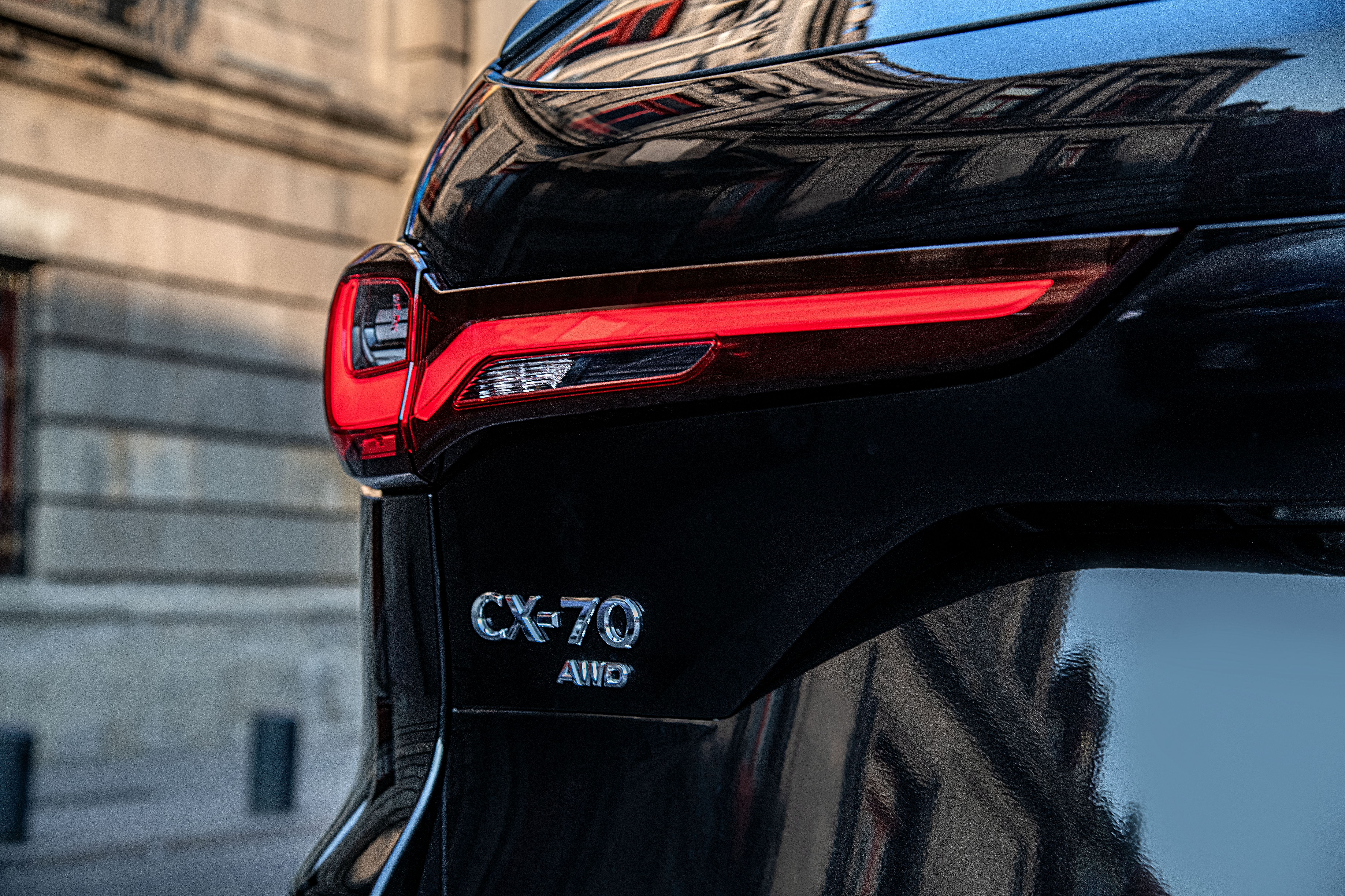 La apariencia de Mazda CX-70 es aún más agresiva y emocional que cualquier otro producto de la familia Mazda y expresa la vitalidad del diseño KODO, que significa alma en movimiento.