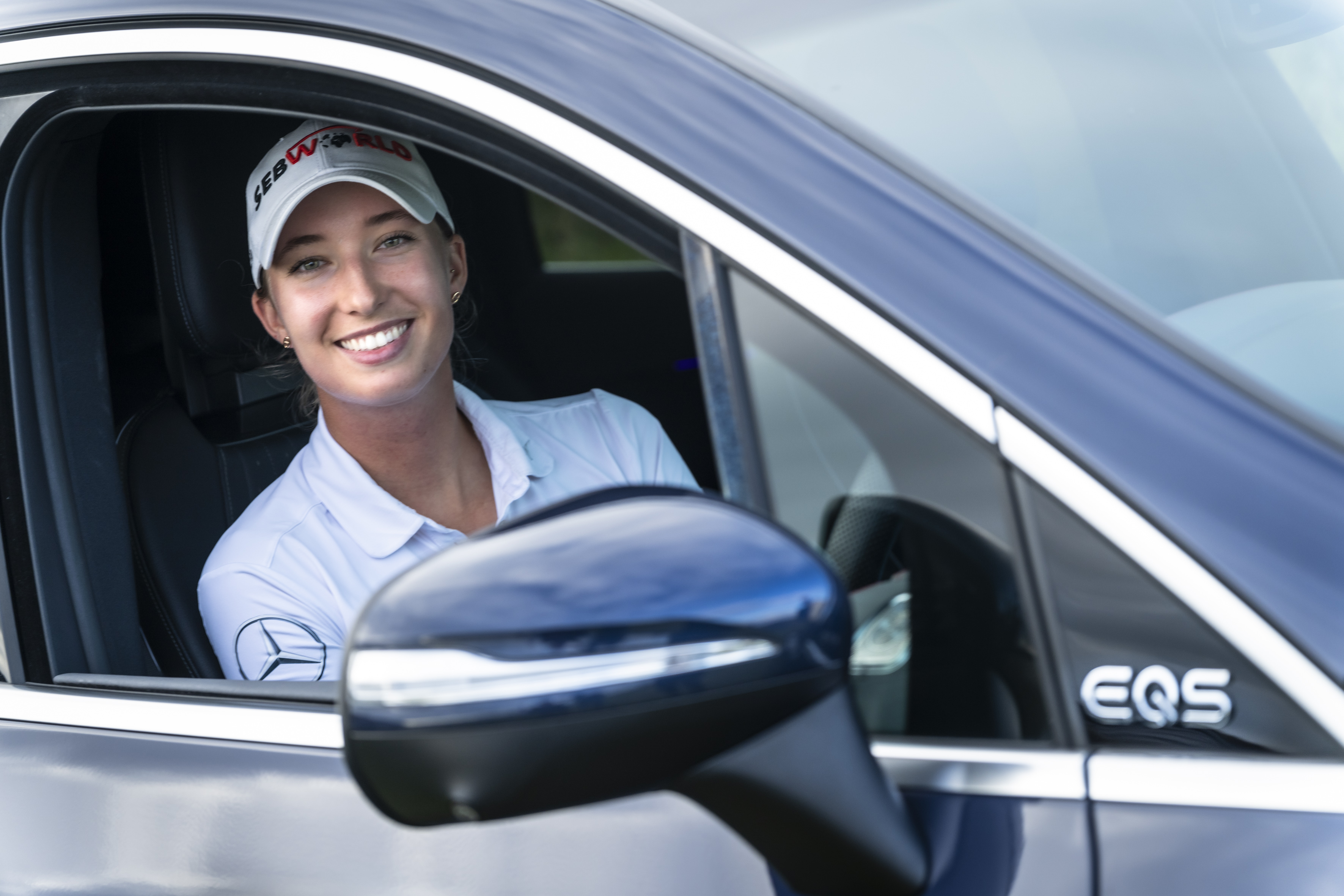 • La campeona defensora Lydia Ko regresa el trofeo del AIG Women’s Open en una Mercedes-Benz EQE SUV.