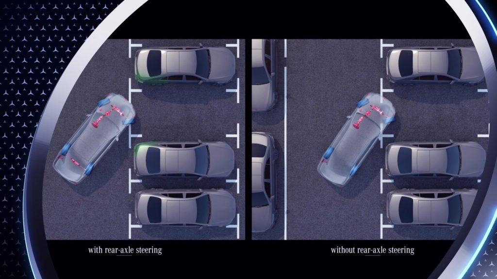 Por debajo de los 60 km / h, las ruedas traseras se mueven en dirección contraria; ésto conlleva mayor agilidad y permite dirigir de forma más sencilla el vehículo, y gracias al sistema de dirección del eje trasero, el radio de giro se reduce mucho, hasta dos metros.