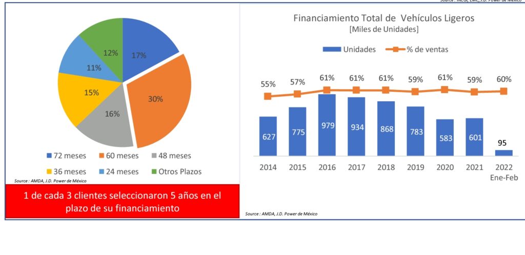Mercado de México en el que existe un variedad importante de plazos en los financiamientos, que van desde los 24 hasta los 72 meses, entre otros. Y en el que el plazo a 60 meses es el más demando, con un 30% de participación en la gran oferta de éstos.