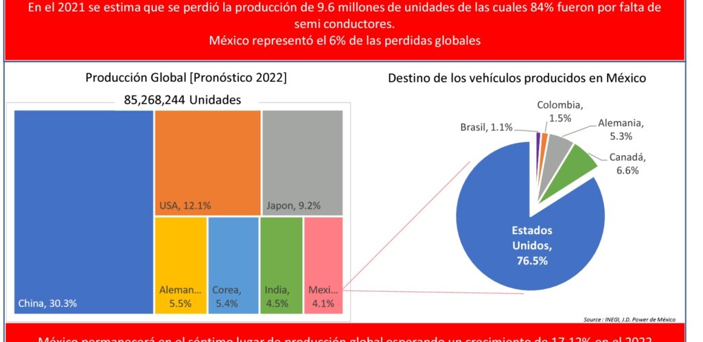 Y con ello, México permanecerá en el séptimo lugar de producción global, esperando un crecimiento de 17.12% en el 2022 respecto al 2021, precisa la información de JD Power.