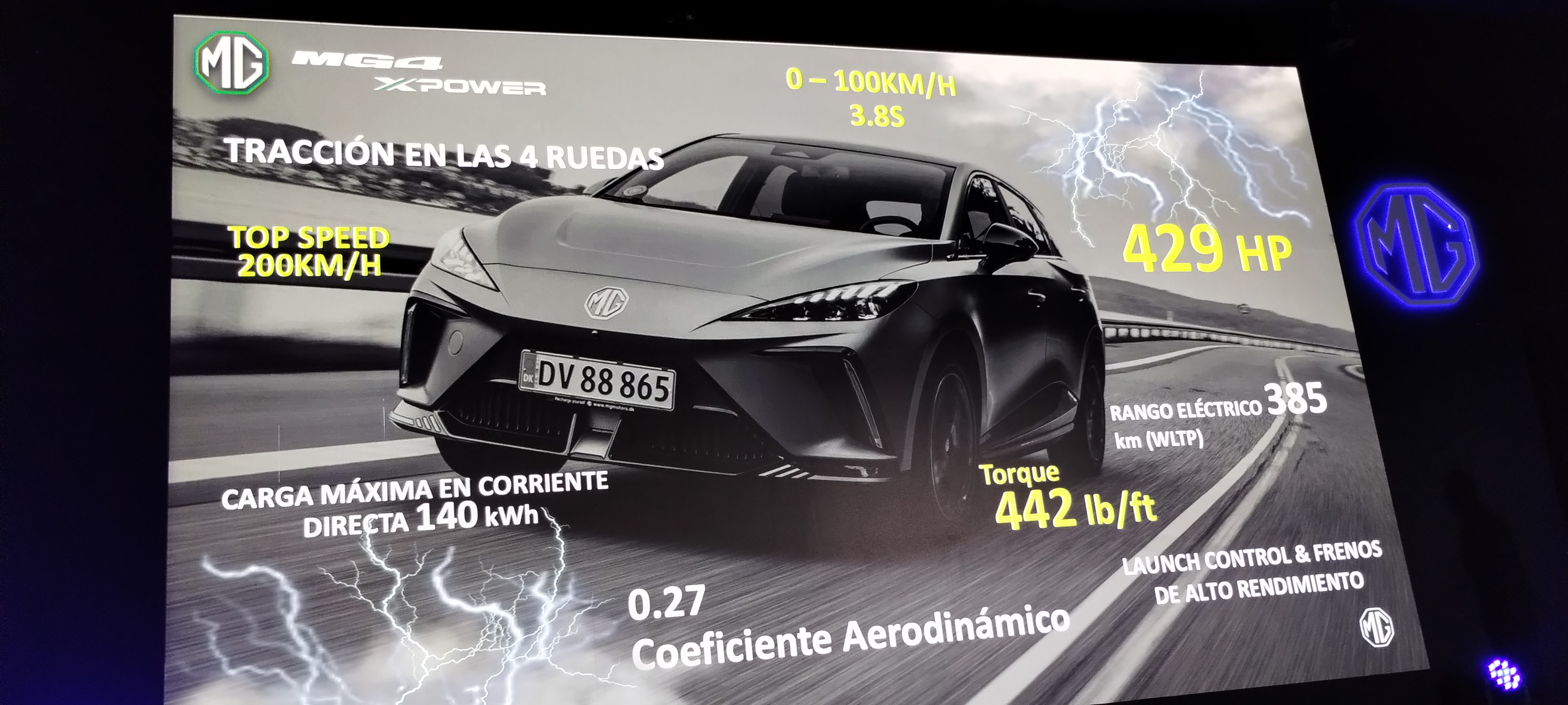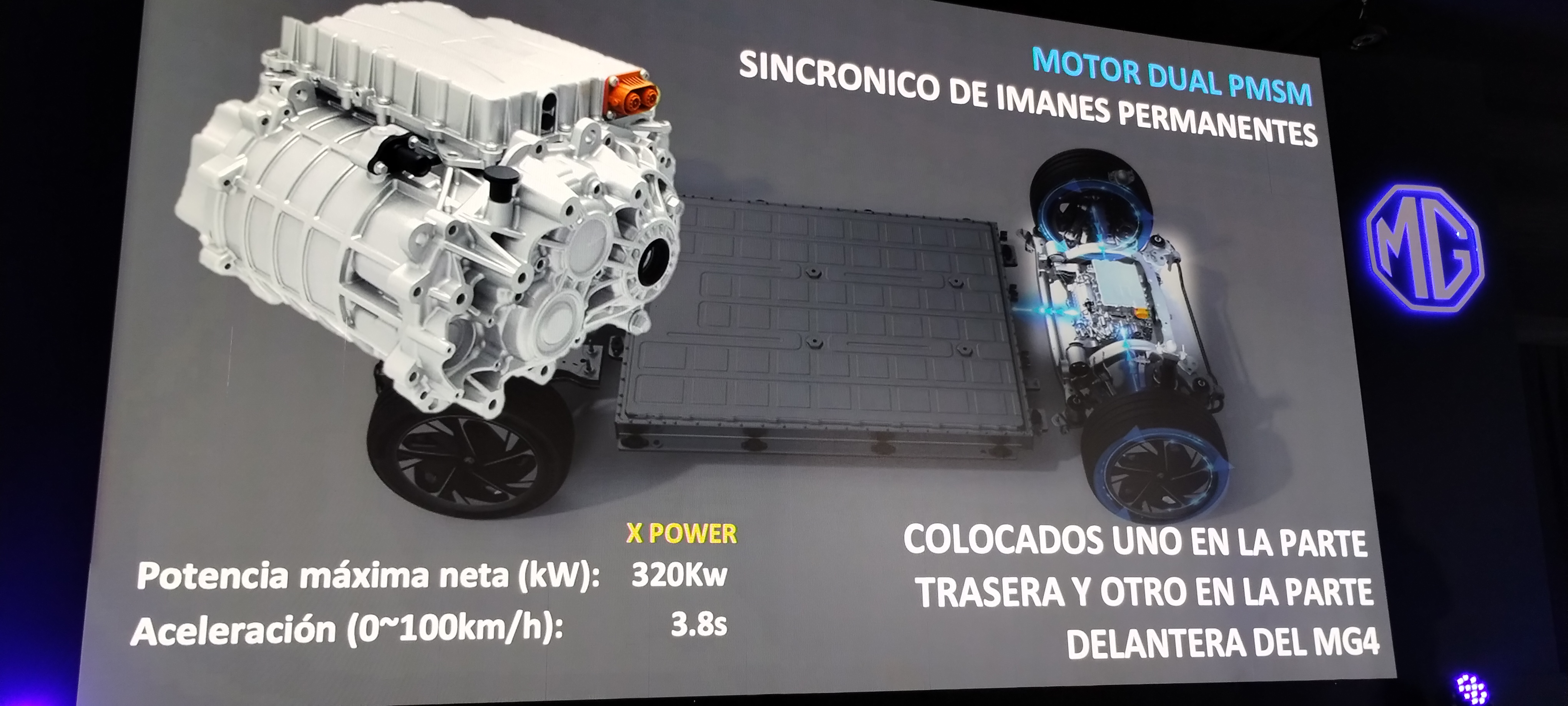 - Con una potencia máxima combinada de 320 kW (430 CV) y un impresionante torque de 600NM (Newton Metro), es capaz de acelerar de 0 a 100 km/h en 3,8 segundos con el sistema launch control y tracción en todas las ruedas, números que no tiene ningún rival dentro de la oferta actual en el rango de precios de MG4.