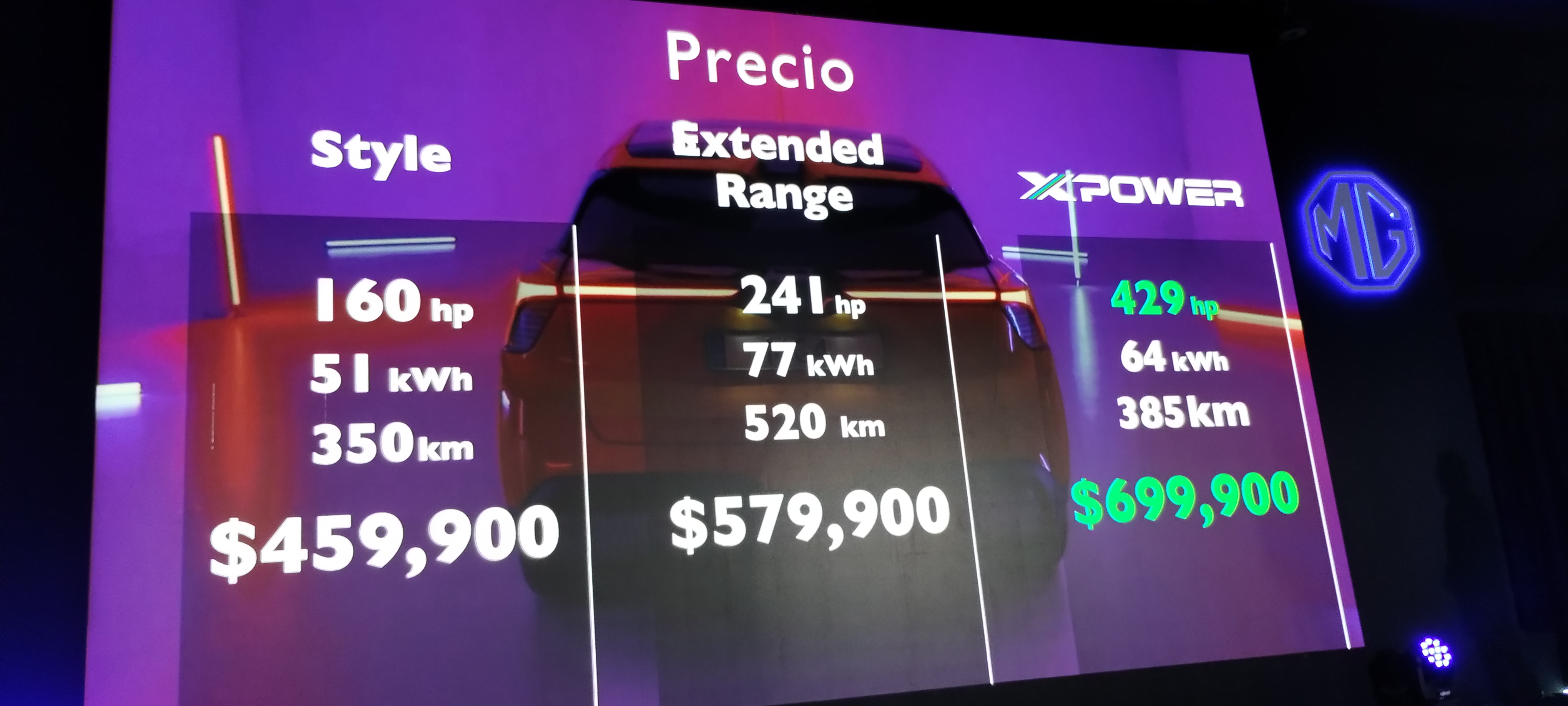 - El precio será de $459,900 MXN en la versión Style, 579,000 en la versión Extended Range y$699,000 en la versión X-Power