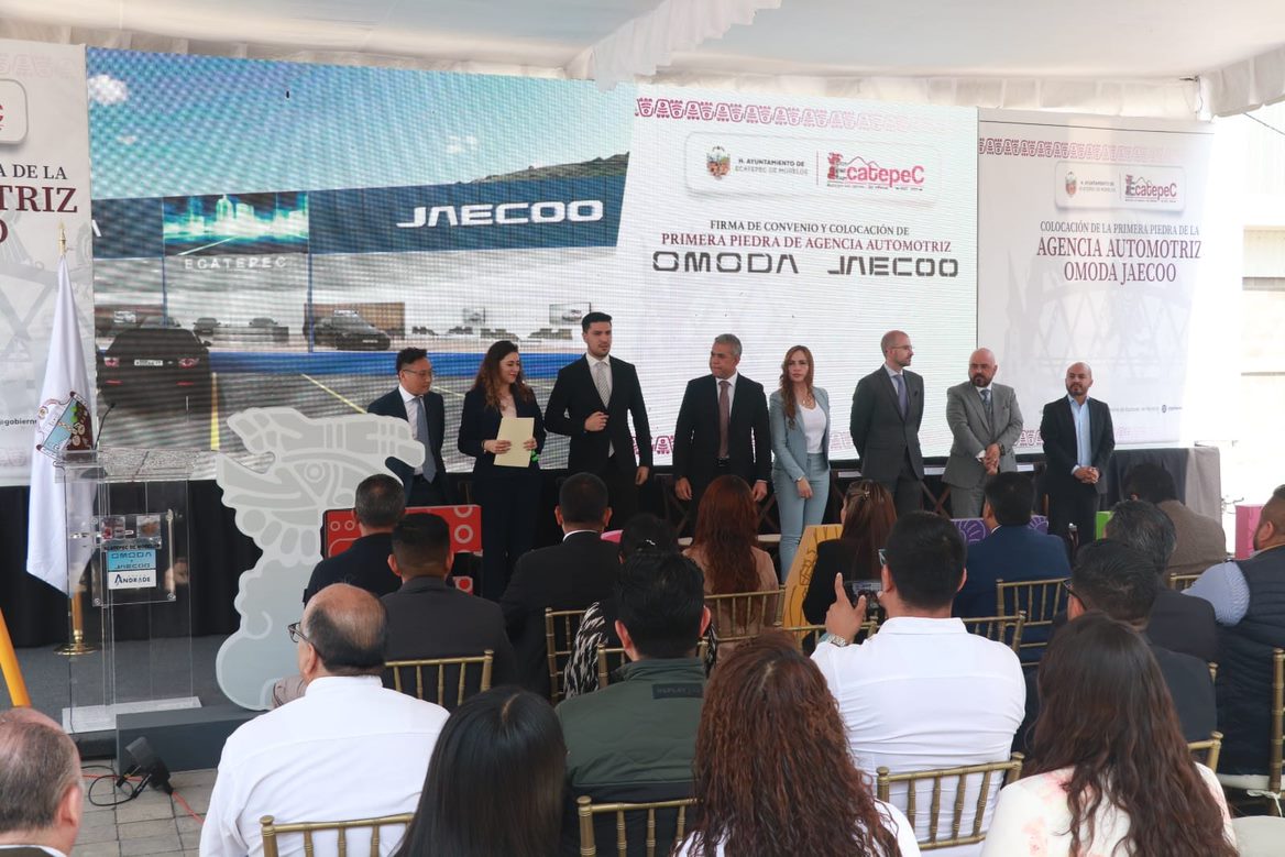 Con la participación de Mr. Bryan Wu, Vicepresidente de Omoda México, Miguel Iglesias, Director General de la División Automotriz de Grupo Andrade, Fernando Vilchis Contreras, Presidente Municipal de Ecatepec de Morelos, se colocó la primera piedra del futuro distribuidor Omoda Jaecoo Ecatepec, como parte de la estrategia de comercialización de las marcas en el territorio mexicano.