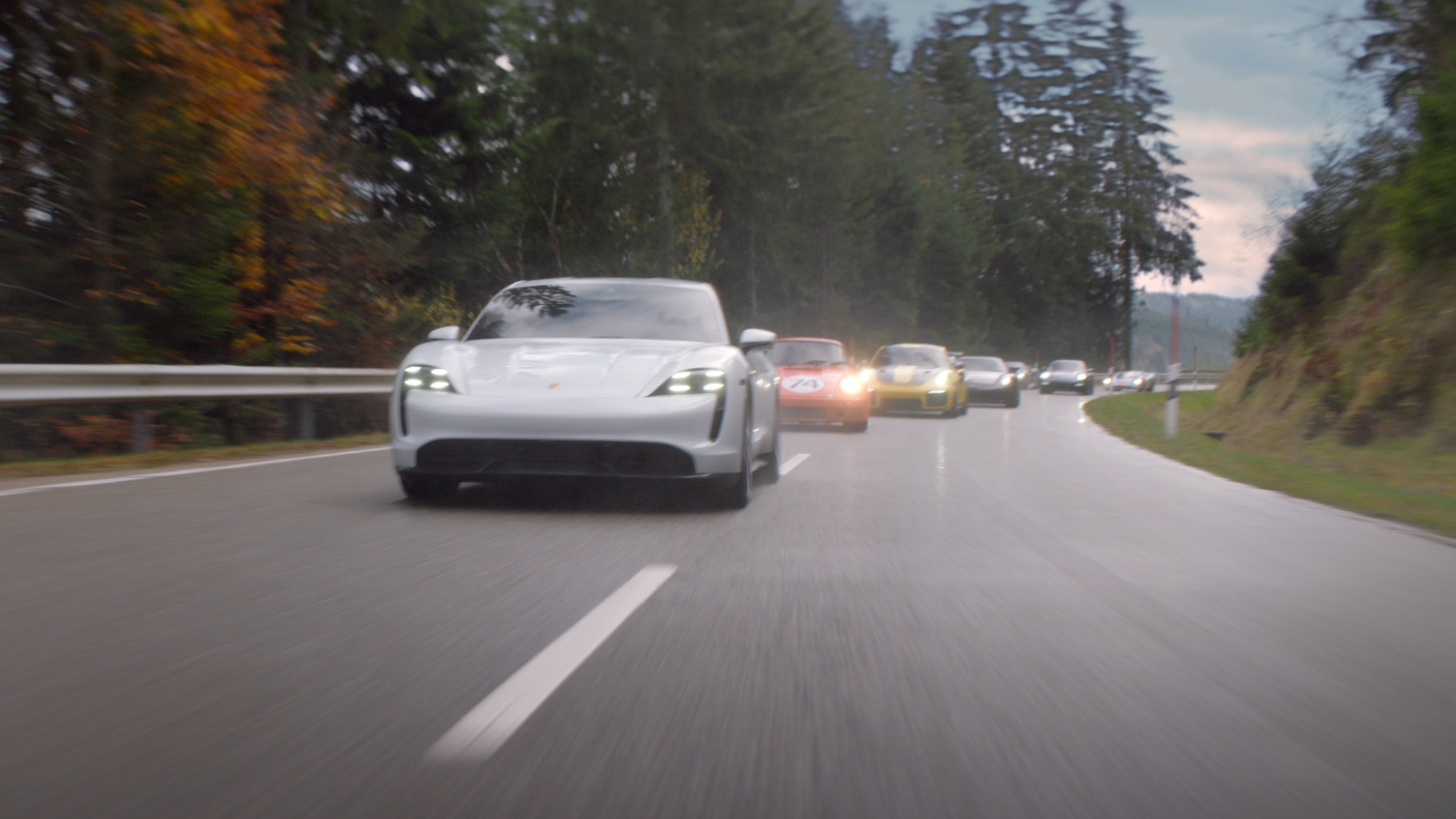 Entre los protagonistas se encuentran el legendario 917 K, el superdeportivo híbrido 918 Spyder y el emblemático Porsche 911, modificado para realizar las espectaculares maniobras en carreteras cerradas al tráfico.