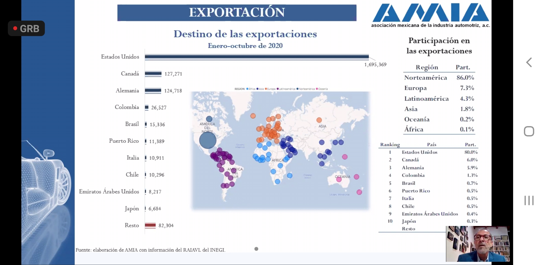 En agosto las exportaciones de México fueron 37 mil millones de dólares, y en particular fueron 12,100 millones de dólares por parte del sector automotor, dijo Fausto cuevas, Director General de la Asociación Mexicana de la Industria Automotriz (AMIA).