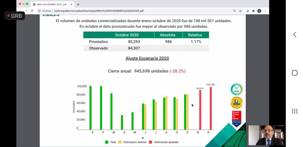 En octubre se vendieron 84,307 unidades, lo que 986 unidades más de acuerdo a lo proyectado por los distribuidores. Y para el mes de noviembre se proyectan 95,000 ventas, lo que se espera que alcanzar por las promociones del “Buen Fin”, y con ello serían 11,000 unidades más de ventas frente a las ventas de octubre.