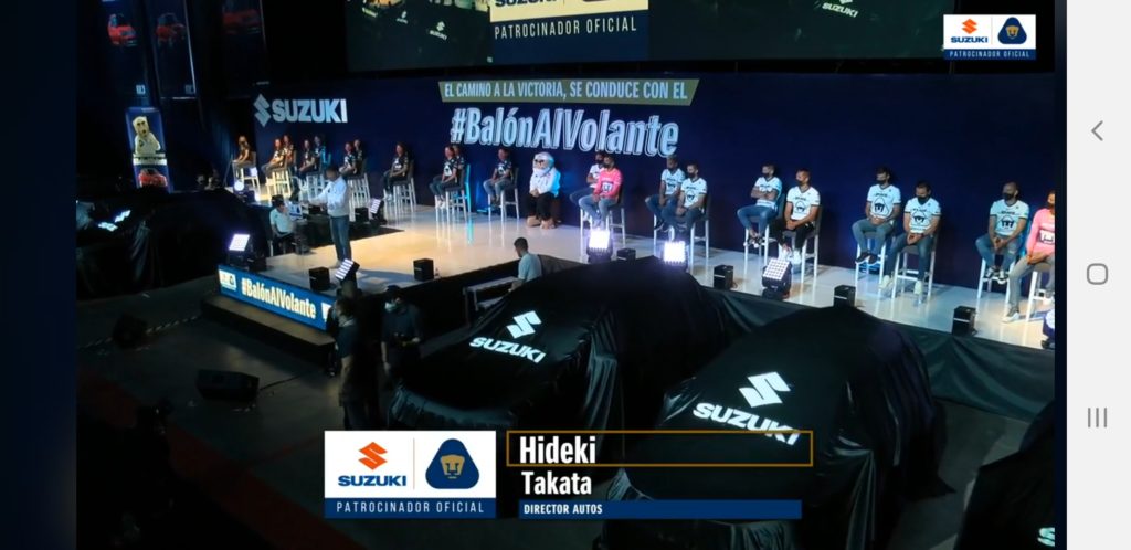 Por su parte Jose Remírez, Director de Comercialización de Pumas dijo: “Nunca un patrocinador en México había entregado autos a todo un plantel. SUZUKI ha regalado dos autos a la afición a través de diferentes dinámicas y se ha sumado a los esfuerzos del Club en importantes causas de responsabilidad social. También se ha integrado al equipo femenil y a las fuerzas básicas, así como a los niños de las escuelas filiales, que, como saben, son nuestro futuro, al patrocinar el Torneo Pumas Interfiliales SUZUKI.”