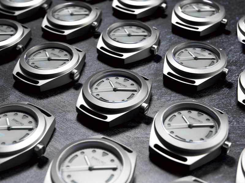 Recubierto en titanio gris, el diseño visualmente atractivo tiene un corte de esfera en tonos grises que resalta su precisión técnica. Debajo del corte de esfera se encuentra la luminiscencia oculta, que emite un tono sutil verde para uso con poca luz. Cuenta con el sutil texto ‘LR001’ en el azul agua característico de Bamford colocado a las seis en punto en el dial.