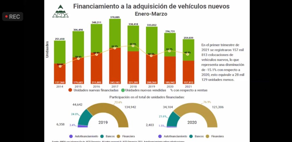 En el rubro de los créditos automotrices, en el primer trimestre se otorgaron 157,813 contratos, lo que a la fecha significa 15.1% de caída respecto al mismo periodo del año 2020. Se puede decir que esta caída ya tocó fondo, por lo que se espera que en los siguientes meses registre crecimientos.