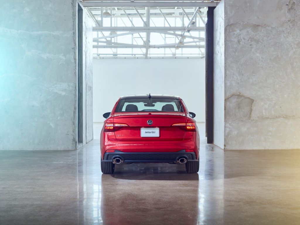 Al igual que en el resto de la gama de Jetta, aquí también se integra el nuevo emblema Volkswagen y el emblema de GLI en la tapa de la cajuela. Se repite el diseño de panal en el nuevo difusor posterior, el cual integra reflejantes y un spliter rediseñado. GLI también destaca un flush spoiler en negro brillante.