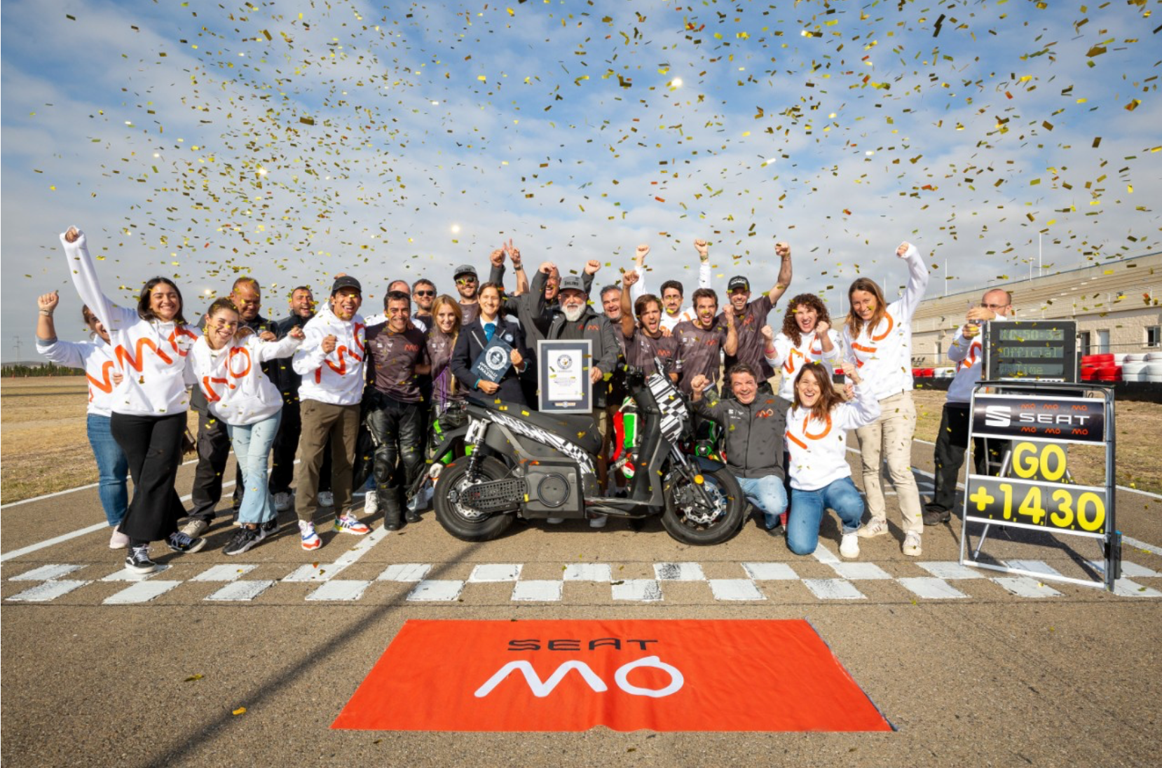 En el Circuito Internacional de Zuera (Zaragoza), el equipo de SEAT MÓ se enfrentó con éxito a su mayor reto hasta la fecha. Una misma unidad de SEAT MÓ 125 Performance logró batir dos títulos Guinness World Records™ en 48 horas consecutivas, tras más de un año de desarrollo y pruebas de la moto y preparación de la tentativa de récord.