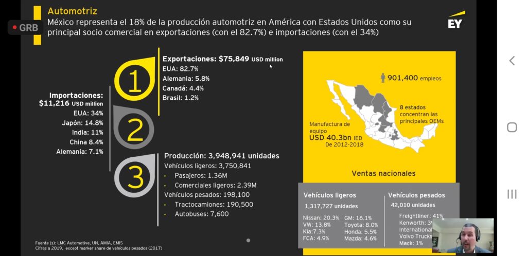 Y otro gran tema de la industria automotriz es el T-MEC, como un reto importante para este sector y que en el corto plazo enfrente un gran costo (reglas de origen), por ejemplo.