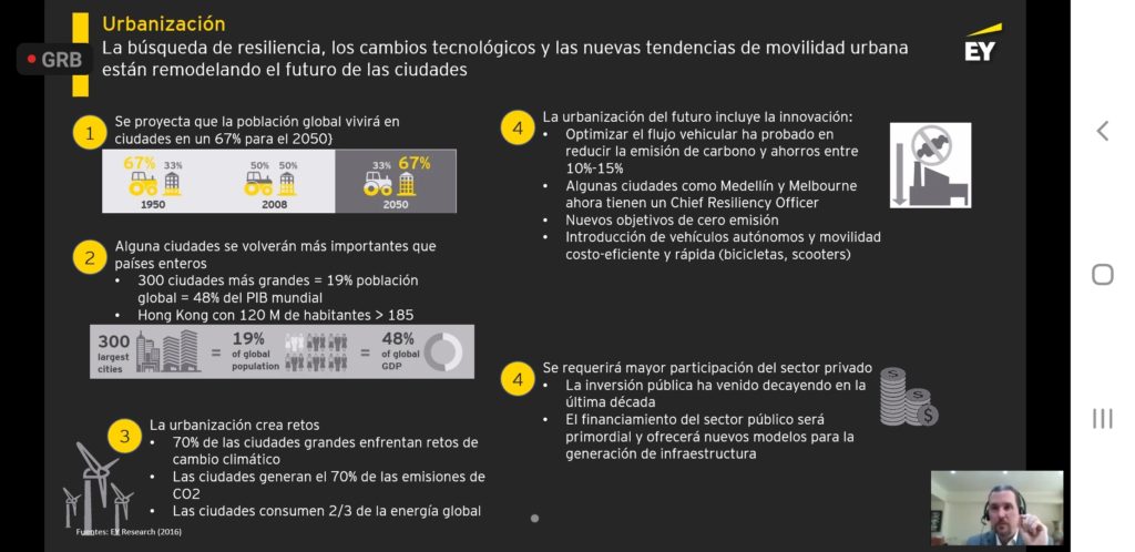 De manera paralela, se tiene una evolución en el tema de transporte, y en que hay una aversión al uso de éste, y en que no hay una infraestructura para nuevos servicios. Y en contraste, las ciudades y urbanización seguirán creciendo en ciudades como la de México.