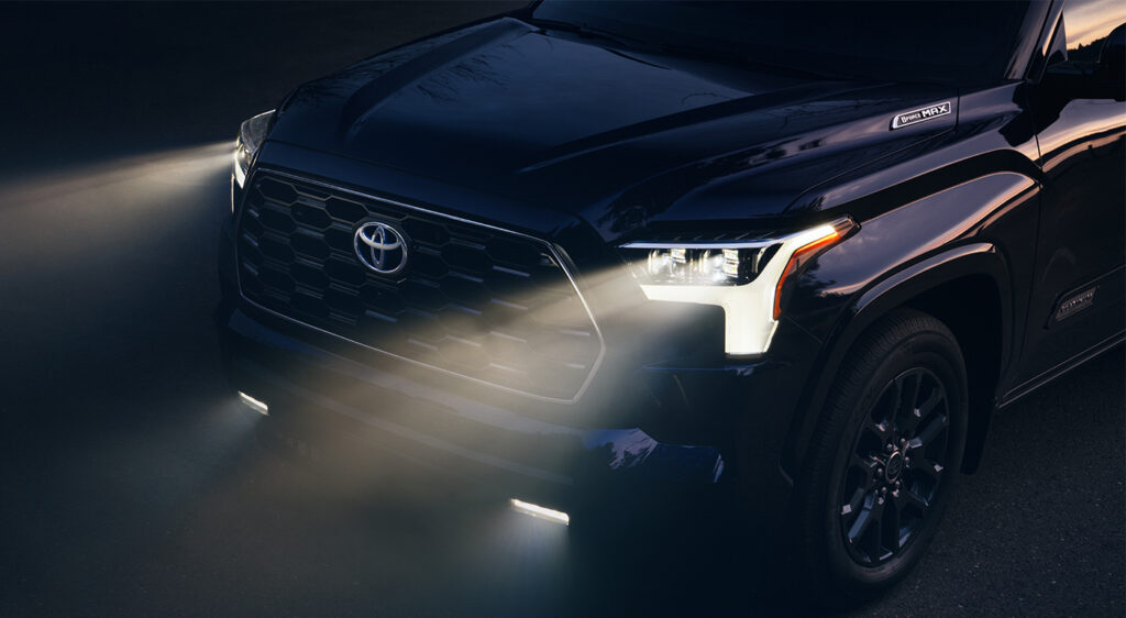 El diseño de Sequoia destaca por su altura y sus líneas redondeadas, lo que le brinda una silueta más poderosa y elegante. También, cuenta con una parrilla en negro que le da un aspecto distintivo y a la cual los Faros LED le dan protagonismo, al igual que sus rines de aluminio de 20 pulgadas.