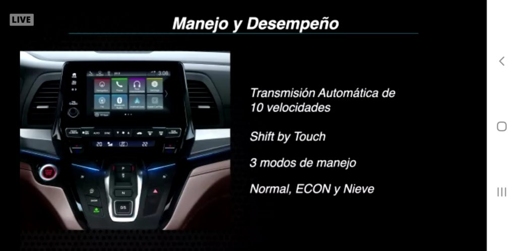 Su motor es un 6 cilindros de 3.5 litros 280 caballos de poder, con 262 lb-pie de torque; su precio: $949,900 pesos, dijo Ricardo Arvizu, Gerente de Producto de Honda de México.