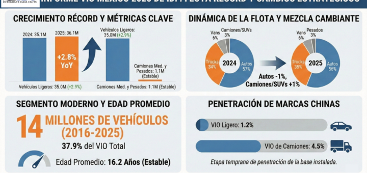El parque automotor total ha alcanzado un máximo histórico de 36.1 millones de unidades, consolidando un mercado resiliente con oportunidades estratégicas para el sector de posventa (aftermarket) global, según reporte Integrate Data Facts (IDF)....
