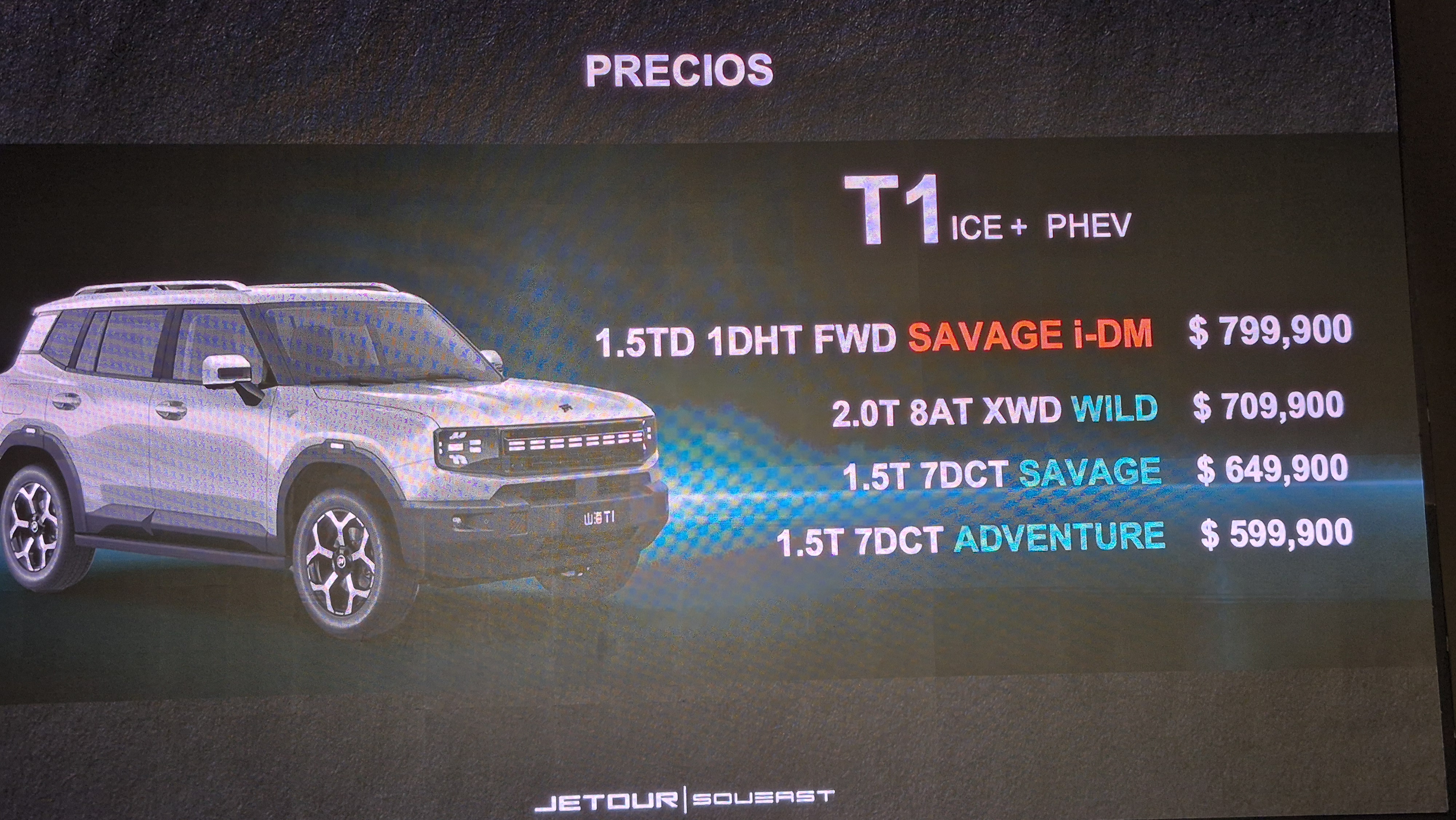 JETOUR T2 i-DM, integrante orientado a la conducción fuera de carretera, de la Familia i-DM, también conjuga tres motores —dos eléctricos y uno a gasolina— con los que cifra una potencia total de 375 HP y 450 lb-ft de torque.