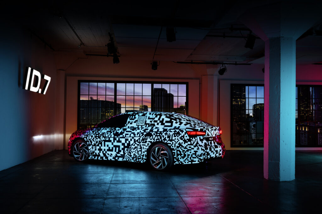 En el CES de Las Vegas, la marca Volkswagen muestra la inteligencia del ID.71 de una forma muy especial. El sedán con camuflaje presenta un diseño digital con una pintura única, que ilumina el ID.7 de forma interactiva. Se aplicaron 40 capas de pintura, de las cuales algunas son conductoras y otras tienen propiedades aislantes. Un total de 22 zonas del vehículo pueden controlarse por separado y se electrifican por debajo de la capa superior de pintura (electroluminiscencia) para que se iluminen. Si todo esto se conecta a un sistema de sonido, el ritmo se visualiza mediante la iluminación de zonas individuales.