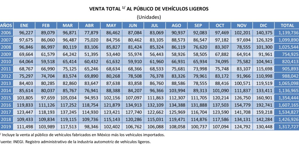Durante el 2019, se comercializaron un millón 317, 727 unidades, lo que fue inferior al millón 426,929 vehículos, es decir, 7.7 por ciento menos.