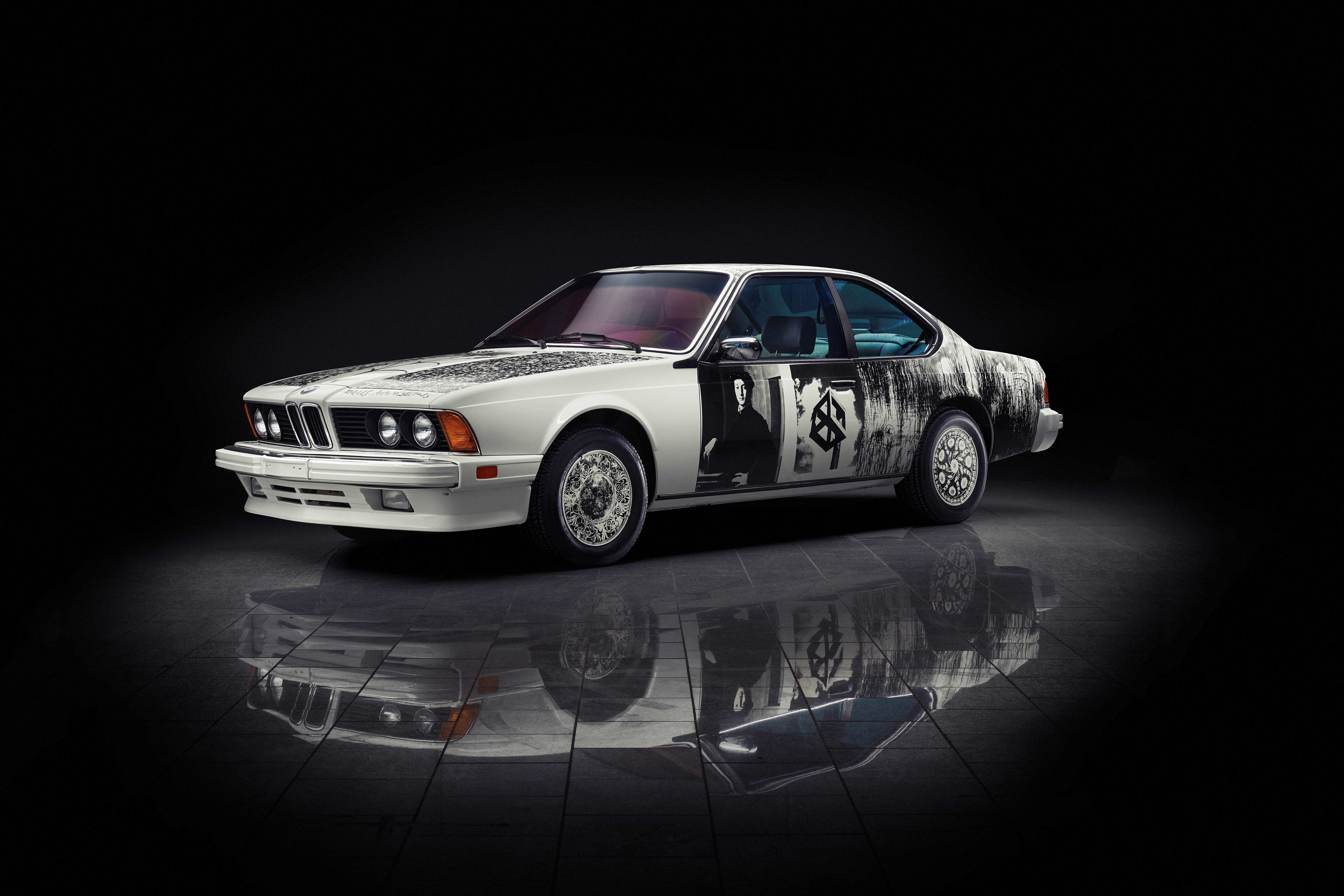 El Art Car de Fuchs, llamado “Firefox on Harehunt”, es un homenaje a la mitología, la velocidad y el simbolismo espiritual. Cuatro años después, la luminaria del pop-art Robert Rauschenberg añadió un sexto auto a la colección, transformando el 635CSi en un collage en blanco y negro de historia del arte, fotografía y cultura cotidiana.