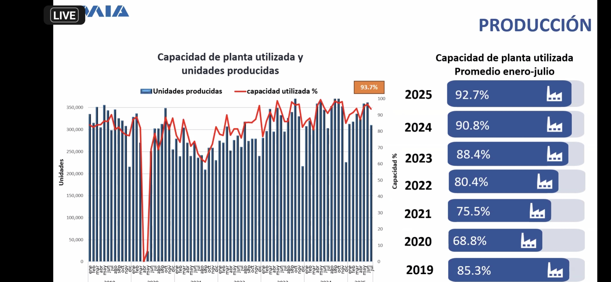 –Capacidad de producción alcanza máximo histórico de 92.7%.